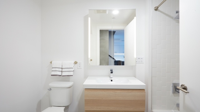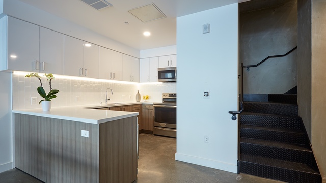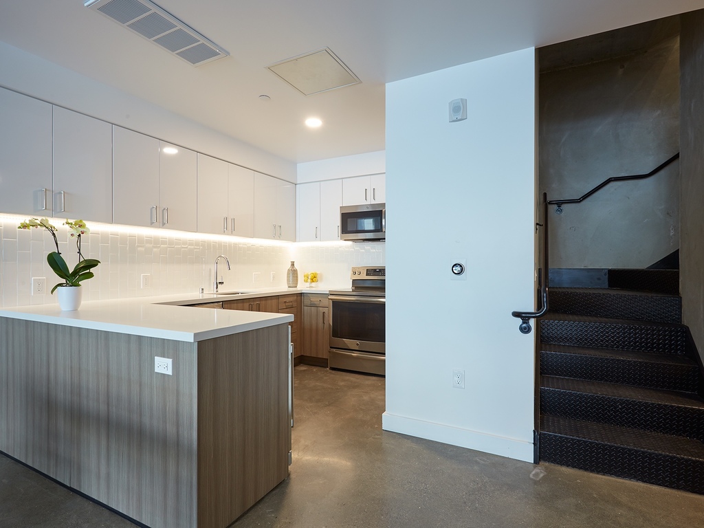 The interior of the Mariposa features a warm palette of materials, fixtures, and finishes inlaid with the latest forms of smart home technology. Nest AI learning thermostats, Latch® keyless entry, and Amazon Hub smart-phone enabled package pick-up lockers provide residents with a cutting-edge and functional living environment.