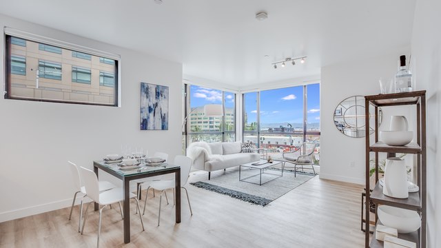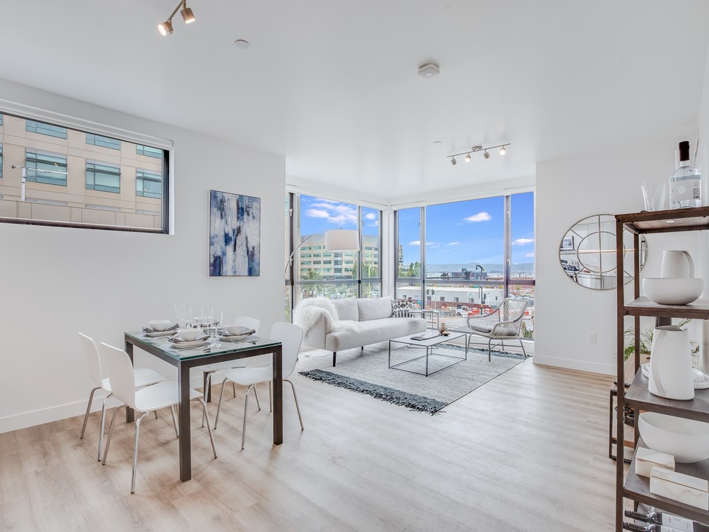 The Mariposa’s tasteful architecture features a modern play on San Francisco vernacular; the Bay Window. The building employs the bay window to maximize views and expand apartment interiors while simultaneously providing residents with an abundance of natural light. The rhythmic tidal ecosystem of Mission Bay tied with The Mariposa’s smart-modern design perfectly complements the natural elements of Dogpatch.